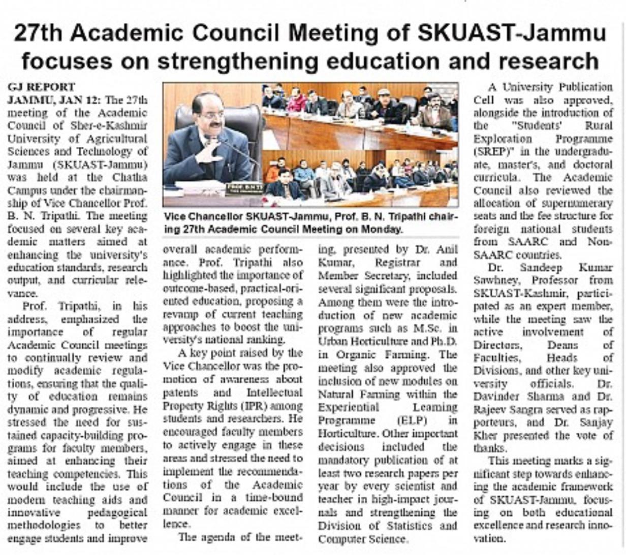 SKUAST-Jammu Releases First-Ever Newsletter "Agri Tribune"